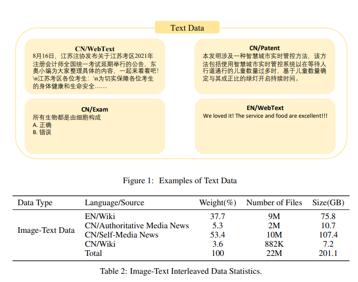 该数据集包含三个部分:纯文本数据集、文本图像对数据集和纯视频数据集。分别介绍如下: