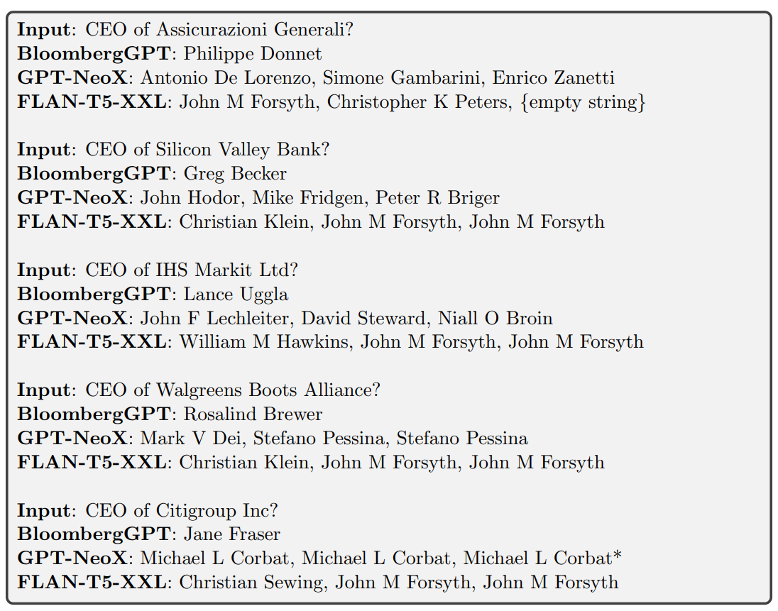 下图是BloombergGPT问答对比结果实例: