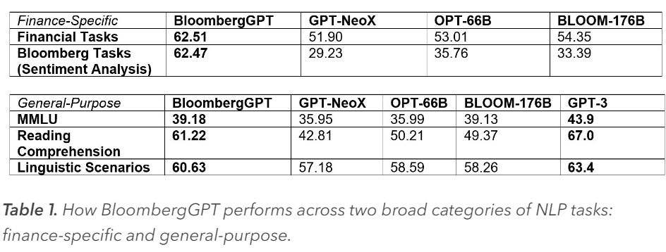 下图是在财经领域和通用领域中BloombergGPT的效果对比: