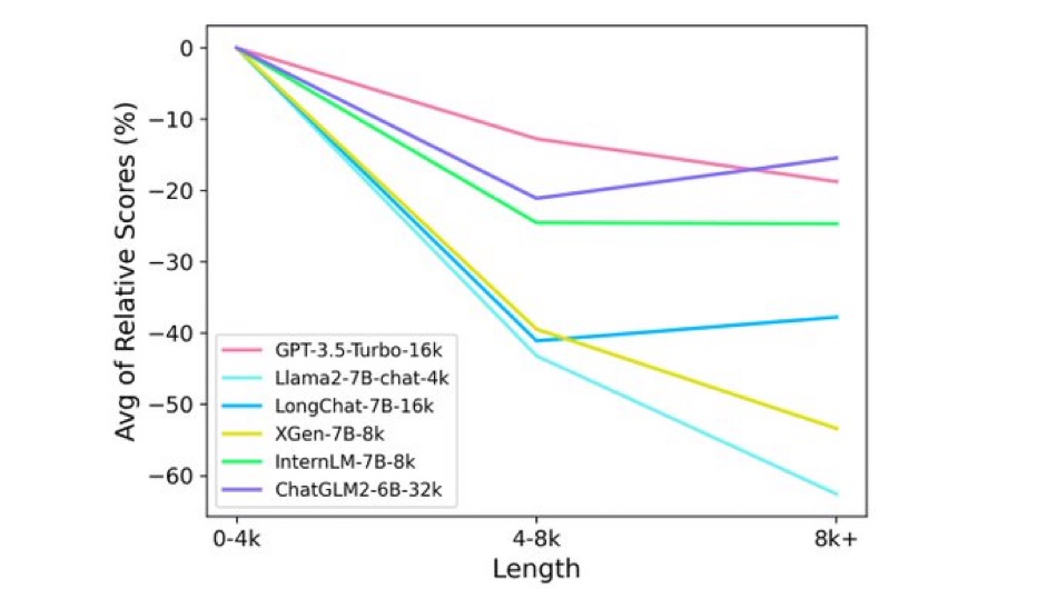 此前,ChatGLM2-6B刚发布的时候,官方宣称该模型最高支持32K长上下文输入,但是LM-SYS官方测试显示ChatGLM2-6B在超过8K长度时候表现很糟糕: 支持超长上下文输入的大语言模型评测和总结——ChatGLM2-6B表现惨烈,最强的依然是商业模型GPT-3.5与Claude-1.3 。