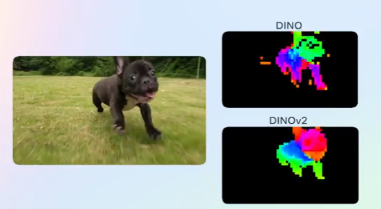 一年之后的2023年4月17日,MetaAI开源DINOv2版本。相比较原始的DINO模型,DINOv2能够对视频进行处理,生成比原始DINO方法更高质量的分割结果。DINOv2能够呈现出非凡的特性,例如对物体部分的强大理解,以及对图像的鲁棒语义和低级理解。