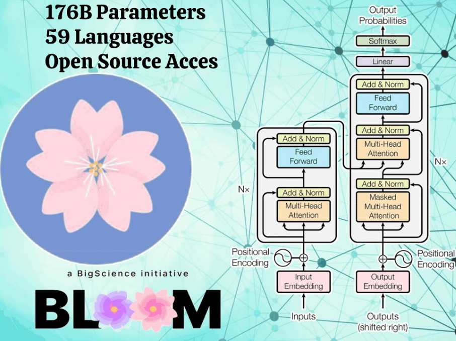 BigScience发布了BLOOM,一个由数百名研究人员合作设计和构建的1760亿参数的开放式语言模型。BLOOM是一个仅解码器的Transformer语言模型,它是在ROOTS语料库上进行训练的,该语料库包含46种自然语言和13种编程语言的数百个来源(总共59种)。