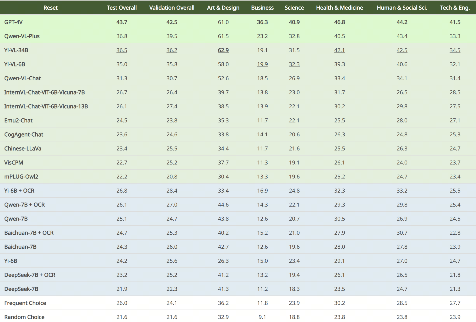 除了60亿参数模型外,还有340亿参数的Yi-VL-34B,这个模型取得了目前多模态评测榜单第一。